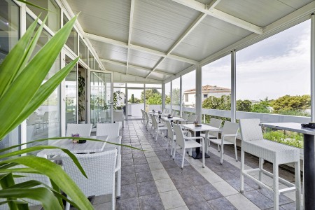 Uređaji: Restoran, aperitiv bar, kongresna dvorana, masaža, slatkovodni bazen sa sunčanom terasom, ležaljkama i suncobranima (besplatno, ograničeni broj), animacijski program za djecu od sredine lipnja do sredine rujna. WiFi internet dostupan u cijelom hotelskom kompleksu (besplatno). Parkiralište ispred hotela (01.06.-30.09. uz naknadu, 10 € po danu, inače besplatno).