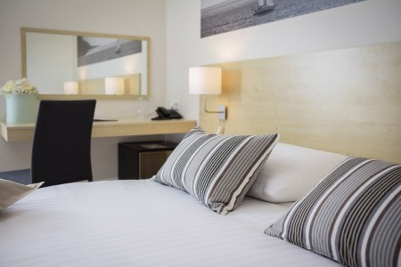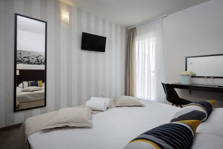 119 soba: moderno i udobno namještene s bračnim krevetom, LCD SAT-TV-om, klima uređajem, telefonom, Wi-Fi internetom (besplatno), sefom, minibarom, malim radnim stolom, tušem/WC-om (s fenom za kosu) i balkonom. Dječji krevetić dostupan na zahtjev besplatno.