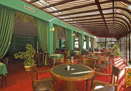 Uređaji: Restoran, a la carte restoran, aperitiv bar, lobby bar s terasom, zimski vrt, bazen s pitkom vodom i whirlpoolom (u radu od 01.05. do 15.09.), bar pored bazena i sunčalište s ležaljkama i suncobranima (besplatno, ograničen broj), unutarnji bazen s pitkom vodom. Parking dostupan uz naknadu (12 € po danu od 26.04.-14.06. i 01.-14.09., 20 € po danu od 15.06.-30.08., inače besplatno; ograničen broj). WiFi internet dostupan u prostorijama lobbyja, bara i restorana (besplatno).