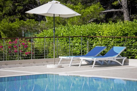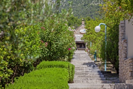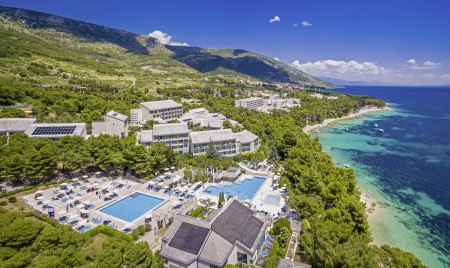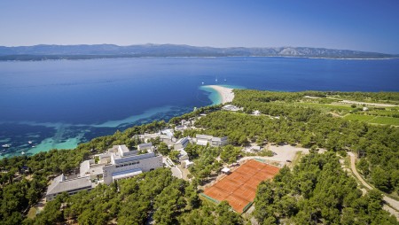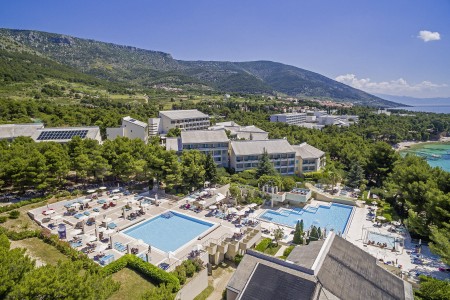Moderno i udobno Sport & Wellness Resort smješteno je okruženo bujnim zelenilom na padini izravno na šetalištu uz plažu u smjeru Zlatnog rata, najljepše plaže u Hrvatskoj. Dijelovi zgrade i objekti povezani su stepenicama.