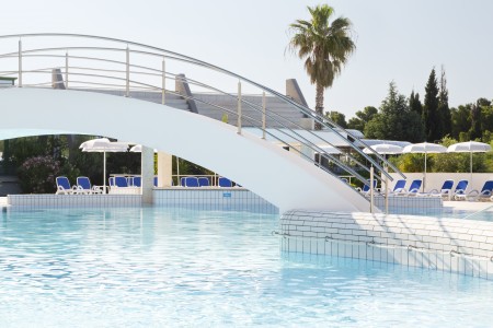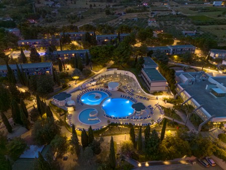 Sadržaji: Središnja zgrada s restoranom, lounge barom i recepcijom; sef. Dječje igralište, dva slatkovodna bazena, spray park za djecu, dva bara uz bazen; ležaljke i suncobrani uključeni, ručnici za bazen uz kauciju. Dnevna i večernja animacija za odrasle; program za djecu u Mini klubu (4–12 god.) i Teen Clubu (12–16 god.) – 6x tjedno, glazba uživo uz bazen (2x tjedno), predstave za djecu (1x tjedno), dječje igralište, fitness centar. Parkiralište uz nadoplatu (10 € po danu) oko 100 m dalje. Besplatan WiFi.