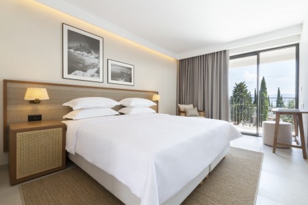 Soba Standard: cca 19 m²; moguće rezervirati s balkonom prema bazenu ili na morsku stranu.