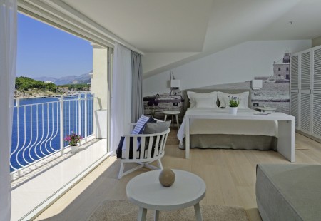 Junior suite: Oko 35 m², ukusno i udobno namještene, s TV, klima uređajem, telefonom, pristupom internetu (LAN) i WiFi (besplatno), radio, minibar, sef, kupaonica/WC, s pogledom na more. Također sadrži dodatni kauč na razvlačenje za jednu odraslu osobu ili dvoje djece.