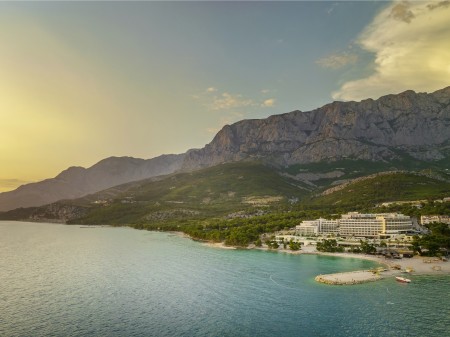 Luksuzni hotel s 5 zvjezdica smješten je na rubu poznatog ljetovališta Makarska, na istoimenoj Makarskoj rivijeri, uz samu prekrasnu šljunčanu plažu, okružen mediteranskim zelenilom i zadivljujućim krajolikom.
