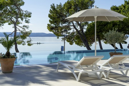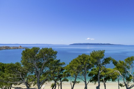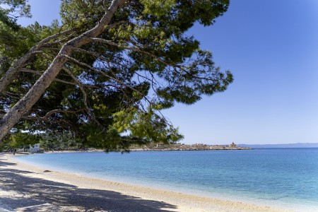 Plaža: Do dugog šljunčane plaže sa hladom dajućim borovima, najmom ležaljki i suncobrana, ima samo 20 m preko šetališta uz obalu.