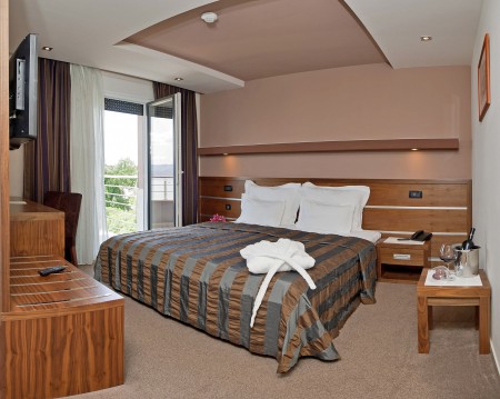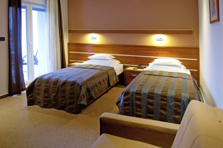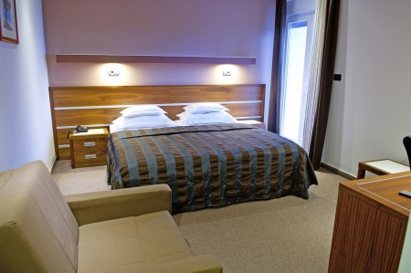 Dvokrevetna soba Superior: približno 22-26 m², dodatno s kaučem na razvlačenje (80x190 cm), s balkonom prema strani s pogledom na more.
