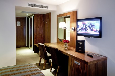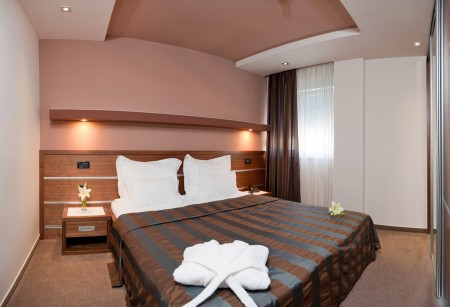 90 soba: moderno i udobno uređene s bračnim krevetom ili dva odvojena kreveta, LED SAT-TV, klima uređaj, telefon, WiFi internet (besplatno), sef, minibar, mali radni stol, tuš/WC (s fenom za kosu). Mogućnost dodavanja dječjeg krevetića na zahtjev uz nadoplatu (7 € po noći).