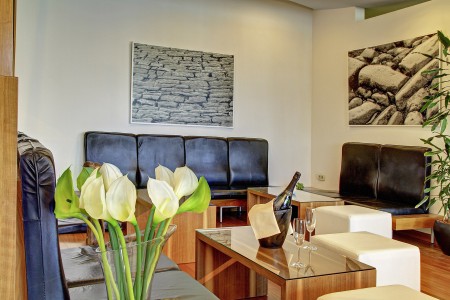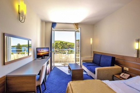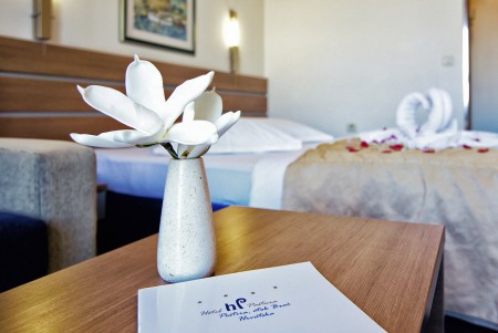 31 Sobe: cca. 21-24 m², moderan i udobno uređene s SAT-TV-om, klima uređajem, telefonom, WiFi internetom (besplatno), minibarom, sefom, tušem/WC-om i balkonom. Moguće rezervirati s pogledom na park ili na more.