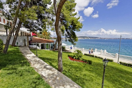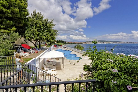 Hotel koji se sastoji od središnje zgrade i pet paviljona smješten je u Seget Donji, izravno uz more. Stari grad Trogir udaljen je otprilike 2,5 km.