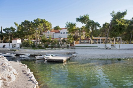 Okružen hladom borovine, Hotel Sveti Križ smješten je preko puta istoimene hodočasničke crkve na sjevernoj strani otoka Čiovo, koji je mostom povezan s šarmantnim mjestom Trogir. Trogir ima jedan od najljepših starih gradova u Dalmaciji i pod zaštitom je UNESCO-a.