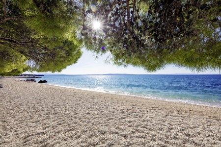 Plaža: Udaljenost do blago padajuće plaže s finim šljunkom, najmom ležaljki i beach barom iznosi otprilike 10 m. Plaža je najduža plaža u Tučepima i nagrađena je Plavom zastavom.