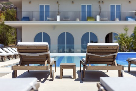 Plaža: Do sitnog šljunčane plaže sa uslugom iznajmljivanja ležaljki i suncobrana ima otprilike 20 metara preko stepenica.