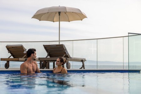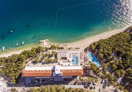 Moderan hotel smješten je samo 12 minuta hoda uz šetnicu od centra Tučepi na Makarskoj rivijeri i nudi idealnu lokaciju za one koji traže opuštanje i parove. Ugrađen u borovu šumu i izravno na obali, gosti mogu uživati u vrhunskoj usluzi i tri bazena.