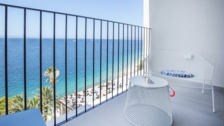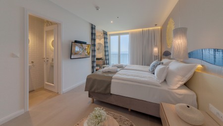 Junior suite: oko 31-35 m², dodatno s prostorom za sjedenje s kaučem na razvlačenje (150x190 cm) za još jednu osobu i namještenim balkonom s pogledom na park, mogućnost rezervacije s pogledom na more.