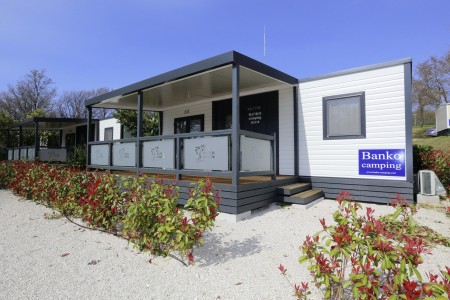 Mobilne kućice Banko Camping su dio popularnog i poznatog kampiranja Bijela Uvala i nalaze se u području K, otprilike 500 m od predivne uvale, okružene mirisnim borovima i mediteranskim zelenilom. Kamp je udaljen samo pet km od Poreča i idealno je mjesto za opuštajući odmor s cijelom obitelji, jer osim oživljavajućeg mediteranskog krajolika nudi brojne sportske i rekreacijske aktivnosti. Dodatne zabavne i rekreacijske sadržaje možete pronaći u obližnjem odmaralištu Zelena Laguna, koje nudi sportske centre, niz ugostiteljskih objekata sa ljetnim terasama i plesnom glazbom, kao i brojne trgovine.