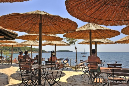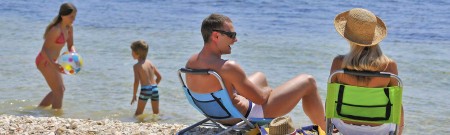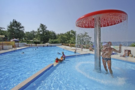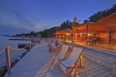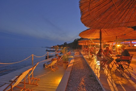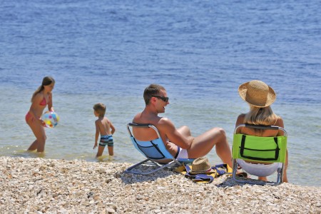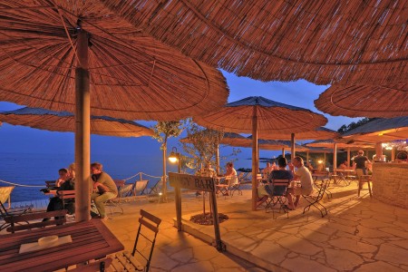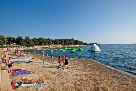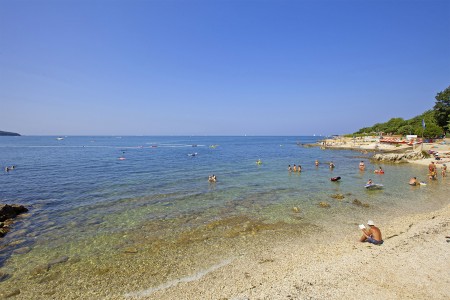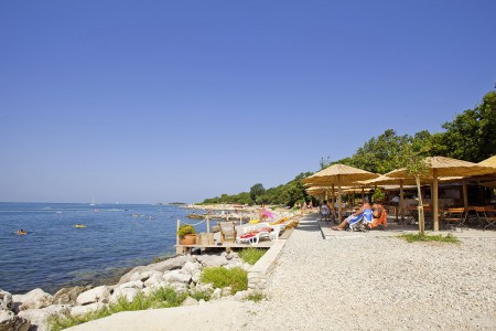 Plaža: Stjenovita i šljunčana plaža s betoniranim prostorima za ležanje i livadama, te tuševima na plaži. Ležaljke i suncobrani uz nadoplatu. Dio plaže namijenjen je za goste nudiste.