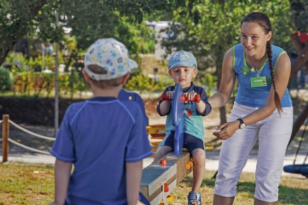 Sport: 8 pješčanih teniskih terena, stolni tenis, odbojka na pijesku, mini golf uz naplatu. Dodatne sportske ponude u blizini - rukomet, košarka, najam bicikala, pedolina, veslački i motorni čamci.