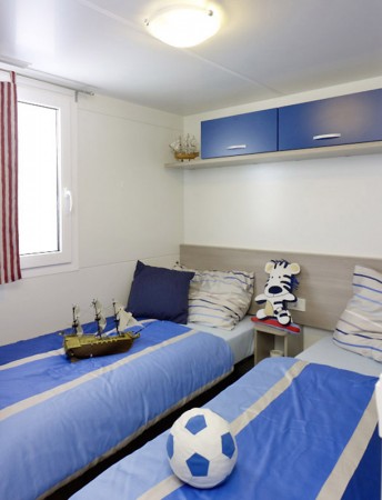 Mobilna kućica „Lux“ za 4-6 osoba: otprilike 24 m², jedna spavaća soba s bračnim krevetom, jedna spavaća soba s dva odvojena kreveta. Dnevni boravak s kuhinjskim blokom (štednjak sa 4 plamenika, hladnjak s ledenicom, mikrovalna pećnica, kuhalo za vodu) i ležajem za dvije osobe, kupaonica s tušem/WC-om, natkrivena terasa (otprilike 11 m²) s garniturom za sjedenje. Također, klima uređaj i parkirno mjesto pokraj mobilne kućice. Nema televizor.