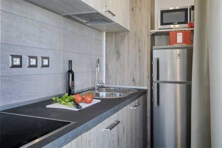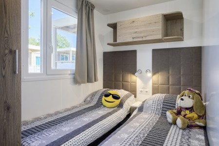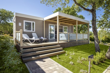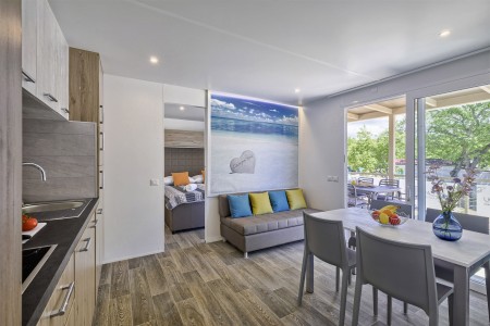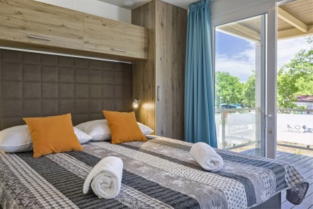Mobilna kućica „Premium Family“ za 4-5 osoba: otprilike 35 m², spavaća soba s bračnim krevetom (160 x 200 cm), spavaća soba s dva pojedinačna kreveta (svaki 80 x 200 cm) i dodatnim gornjim ležajem za jednu osobu, dvije kupaonice s tušem i WC-om, dnevni boravak / blagovaonica s kompletno opremljenom kuhinjom (mali kuhinjski plamenik, mikrovalna pećnica, električno kuhalo za vodu, aparat za kavu, hladnjak sa zamrzivačem, perilica posuđa), velika natkrivena terasa (otprilike 26 m²) sa garniturom za sjedenje i dvije ležaljke. Također SAT-TV, klima uređaj, besplatni WiFi internet i rezervirano parkirno mjesto.