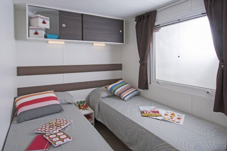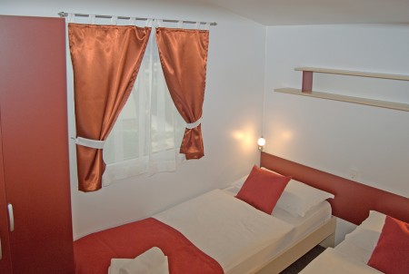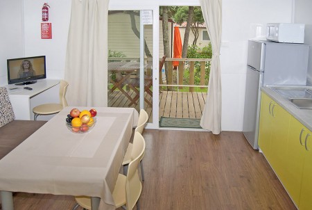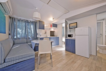 Mobilna kućica „Standard“ za 4 osobe: cca 30 m², jedna spavaća soba s bračnim krevetom (160x200 cm), jedna spavaća soba s dva odvojena kreveta (svaki 80 x 200 cm), dnevni boravak s klima uređajem, SAT-TV-om, kuhinjom opremljenom mikrovalnom pećnicom, perilicom posuđa i aparat za kavu, blagovaonska zona, tuš/WC, velika natkrivena terasa s garniturom za sjedenje i dvije ležaljke. Parkirališno mjesto pored mobilne kućice za 1 automobil.