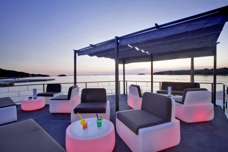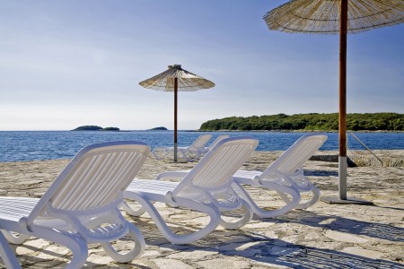 Plaža: Plaža od stijena i šljunka duga 900 m sa sportskim centrom, iznajmljivanjem brodova, beach barom, tuševima i svlačionicama udaljena je oko 200 m, ovisno o smještaju. Osim toga, plaža je nagrađena "Plavom zastavom", koja predstavlja čisto, uređeno obalno područje s vrhunskom kvalitetom vode. Suncobrani i ležaljke uz doplatu.