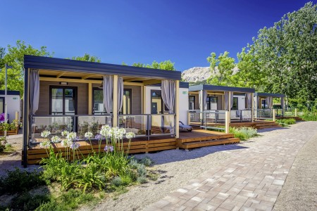 Mobilna kućica "Vela Bay" za 4-6 osoba: približno 32 m², jedna spavaća soba s bračnim krevetom, jedna spavaća soba s dva jednostruka kreveta (80x200 cm), dvije kupaonice s tušem/WC, dnevno-spavaći prostor s kutnom garniturom (mjesto za spavanje za 2 djece do 11,99 godina), trpezarijski stol i potpuno opremljena kuhinjska niša s pećnicom, mikrovalnom pećnicom, frižiderom s ledenicom i aparat za kavu. Natkrivena terasa s garniturom za sjedenje i dvije ležaljke za sunčanje. Također, besplatni WiFi Internet, SAT-TV i klima uređaj. Mobilna kućica se nalazi u Vela Bay Village.