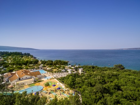 Posebno dizajniran kamp Resort s naglaskom na ekološku održivost smjestio se na otoku Krku, samo 2 km udaljen od istoimenog glavnog grada. Resort je uređen u stilu malog mediteranskog sela smještenog usred borove šume i borova pravo na moru, a nudi razne parcele i moderne mobilne kućice za udoban boravak u prirodi. Osim toga, na raspolaganju su vam brojni bazeni, vodeni park i ekološki objekti. Na središnjem trgu resorta, Piazzi, možete pronaći prodavaonice, pekare i restorane.