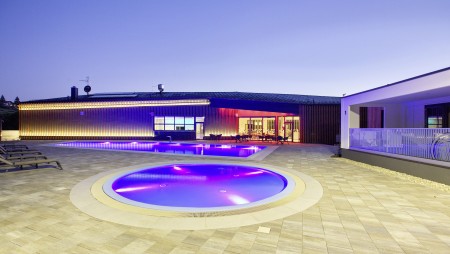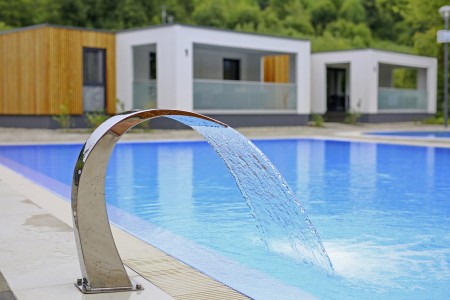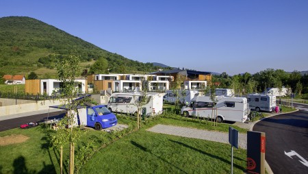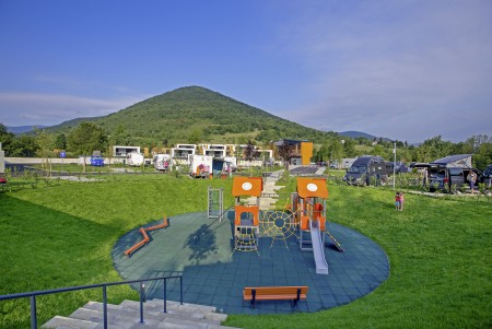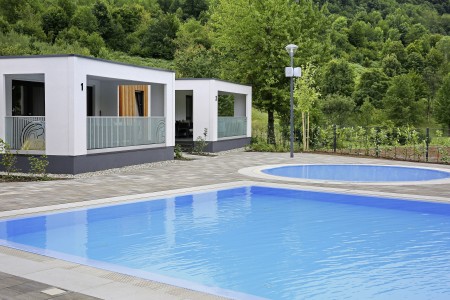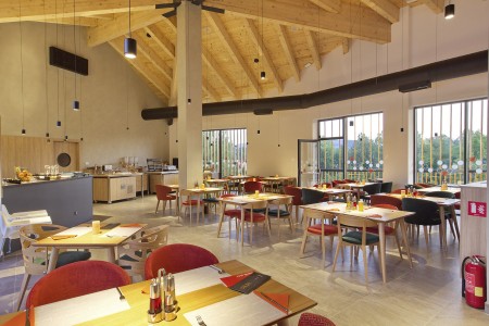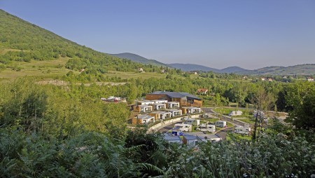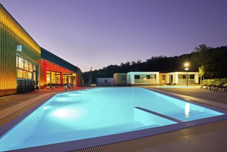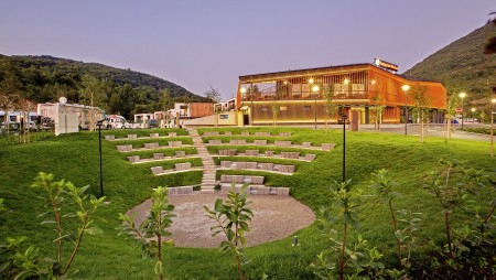 Uređaji: Recepcija, restoran, dječje igralište i igraonica, bazen s ležaljkama, dječji bazen i bar pored bazena, animacijska zona za djecu i odrasle (ovisno o sezoni), prostor za roštilj, praona s sušilicom i perilicama za rublje (uz nadoplatu) te prostor za pranje pasa. Također, besplatna parkirališna mjesta.