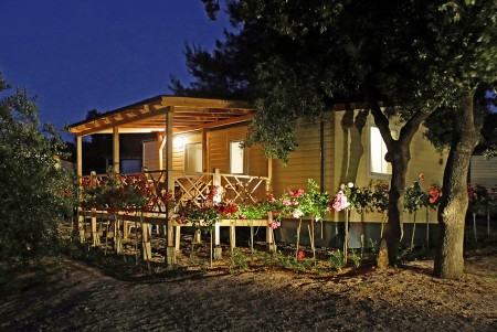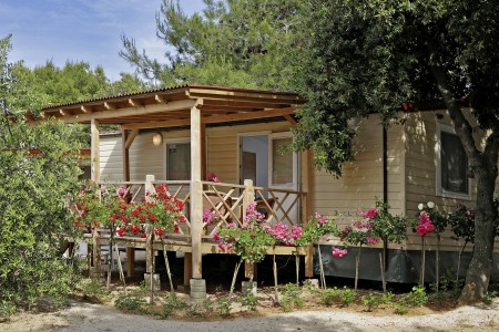 Mobilna kućica "Family Luxury" za 6-7 osoba: otprilike 40 m², moderno opremljena, jedna spavaća soba s bračnim krevetom (160 x 200 cm), dvije spavaće sobe s po dva jednostruka kreveta (svaki 80 x 190 cm), dnevni boravak s kuhinjskim blokom (hladnjak, mikrovalna, štednjak, perilica suđa) i blagovaonskim kutom s kaučem na razvlačenje za dijete do 11 godina, kupaonica s tušem/WC, zaseban WC, natkrivena terasa s garniturom za sjedenje. Također klima uređaj, i SAT-TV i pogled na marinu i kamp.