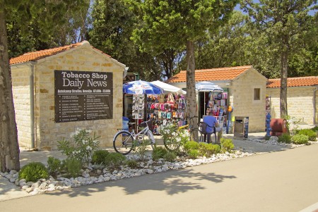 Uređaji: Različiti restorani, pizzeria, taverne, supermarket, suvenirnica, kiosk s novinama, štandovi s voćem i povrćem, praonica rublja, nekoliko dječjih igrališta, animacijski programi za djecu i odrasle. Parkirališna mjesta dostupna odmah pored mobilnih kućica. WiFi-Internet dostupan na cijelom kampu (besplatno). Za sezonu 2015. izgrađen je novi bazen.
