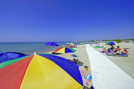 Plaža: Do 2000 m dugog pješčanog i šljunčanog plaže - uglavnom s pješčanim morskim dnom i vrlo plitko, stoga idealno za malu djecu - ovisno o smještaju, udaljen je otprilike 250 do 950 m. Najam ležaljki i suncobrana, snack bar i vodeni tobogan.