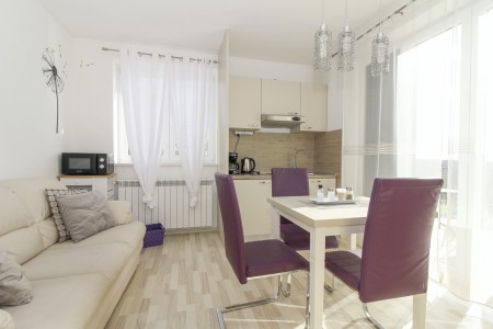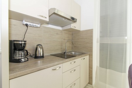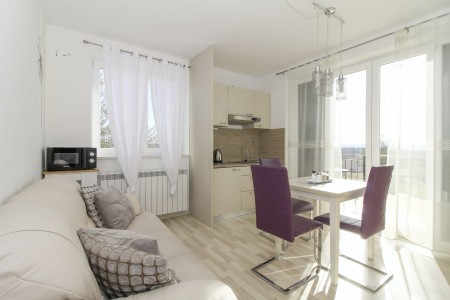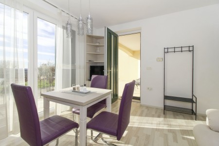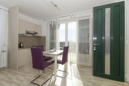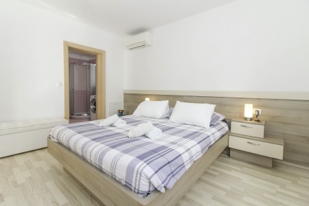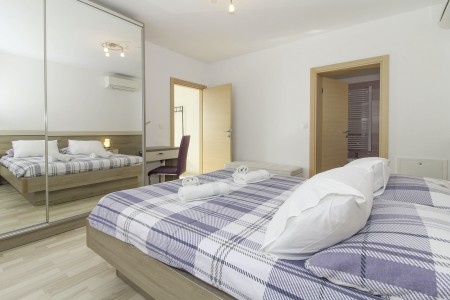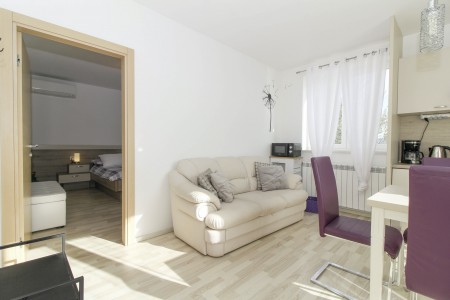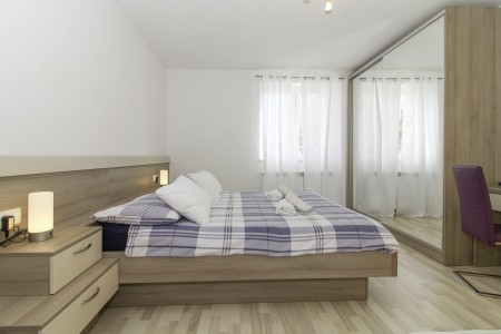Apartman za 2 osobe: ca. 35 m², smješten u prizemlju obiteljske kuće u kojoj žive i vlasnici. Apartman raspolaže dnevnim boravkom s kuhinjom i blagovaonicom, spavaćom sobom s bračnim krevetom i klima uređajem, te kupaonicom (tuš/WC). Također, na raspolaganju Vam je i djelomično natkrivena terasa s garniturom za sjedenje.