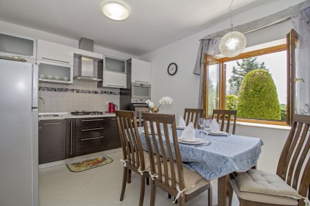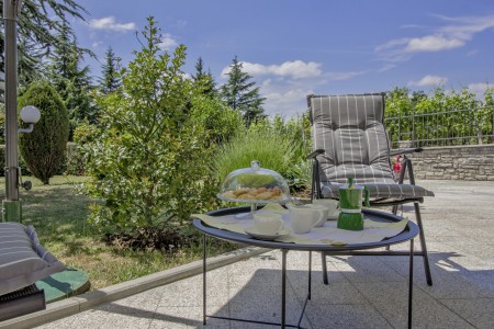 Kuća s apartmanom smještena je u mirnom, zelenom okruženju, na otprilike 2 km od Gračišća i 6 km od Pazina. U Gračišću možete pronaći sve što Vam je potrebno za svakodnevne potrebe, a možete posjetiti i šarmantnu starogradsku jezgru s vidikovcem koji pruža jedinstven pogled na uvijek zelenu prirodu poluotoka Istre. U okolici se nalaze brojne pješačke i biciklističke staze koje pozivaju na duge istraživačke ture. Gosti željni avanture mogu posjetiti Zipline preko Pazinske jame. Na samo 8 km udaljenosti se nalazi Zarečki Krov, kojeg stanovnici zovu i „Pazinska rivijera“ – ovdje pada mala rijeka Pazinčica u obliku vodopada u malo jezerce, gdje se ljeti možete i okupati. Uz udoban apartman, očekuje Vas i održavan vrt s dovoljno prostora za igru malih gostiju te prostor za opuštanje i roštilj, koji stoje samo Vama na raspolaganju. Vlasnici žive u istoj kući, ali to ni na koji način neće ometati Vašu privatnost. Do najbliže plaže u Plominu potrebno je oko 20 minuta vožnje automobilom.
