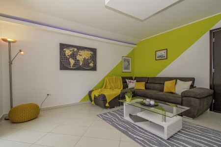 Ostalo: Besplatan WiFi internet. Četiri bicikla (3 za odrasle, 1 dječji) dostupna su gostima na besplatno korištenje. Potpuno ograđen vrt s trampolinom, garniturom za sjedenje i ležaljkama pruža privatnost te je dostupan samo Vama. Privatni parking unutar ograđenog dvorišta.