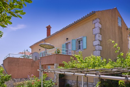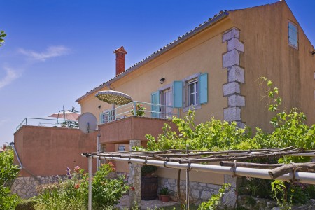 S terasa ovih apartmana proteže se prekrasan pogled na Kvarner. Kuća se nalazi na velikom zemljištu i graniči s maslinikom. Pobjegnite od gradske vreve i uživajte u miru i prirodi koja poziva na duge šetnje. Ili zaronite u plavo more koje je udaljeno samo 10 minuta pješke. U obližnjoj uvali se nalazi šljunčana plaža s uređenim travnjakom za sunčanje i dječjim igralištem. Vaši domaćini žive u susjedstvu i tu su za Vas ako imate pitanja.