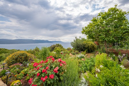 U apsolutno mirnom okruženju, s prekrasnim pogledom na more i otok Cres, smještena je Villa Paradiso, na slikovitom brežuljku uz istočnu obalu poluotoka Istre. Aktivni odmor ovdje je zagarantiran, uz duge šetnje i biciklističke ture kroz jedinstveno lijep krajolik. Oni koji žele jednostavno opuštanje uz prekrasan pogled na more također će ovdje pronaći svoj mir. Kuća se sastoji od privatnog stana vlasnice i dva apartmana za odmor. U zajedničkom vrtu nalazi se prostor za sjedenje, ležaljke i dva suncobrana. Najbliža plaža udaljena je oko 3 km. Kao zanimljive izletničke destinacije u okolici izdvajaju se gradovi Plomin (5 km) i Labin (15 km), a i Opatija (33 km) je lako dostupna automobilom. U obližnjem mjestu Brestova nalazi se trajektna veza s otokom Cresom – pravim rajem za ljubitelje prirode.