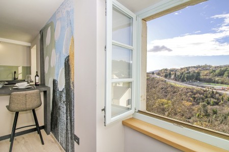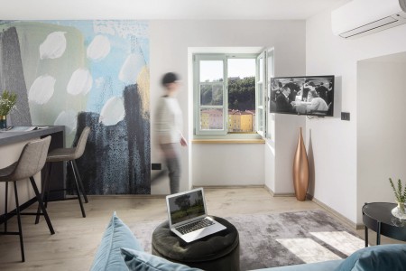 Apartman Erna smješten je u povijesnoj zgradi u staroj jezgri Labina, koja se nalazi na brdu. Potpuno nov, udoban i moderno uređen, apartman nudi idealne uvjete za boravak u dvoje u romantičnoj atmosferi starogradske jezgre, bez odricanja od suvremenog komfora. U Labinu ćete pronaći sve što Vam je potrebno za svakodnevne potrebe, jer su restorani, barovi i trgovine lako dostupni pješice. Prekrasne šljunčane plaže u Rapcu, kao i divlje, prirodne uvale za kupanje na istočnoj obali Istre, udaljene su samo nekoliko minuta vožnje automobilom. Osim toga, okolica Labina idealna je za biciklističke i pješačke ture kroz zelenilo prekrasnog krajolika.