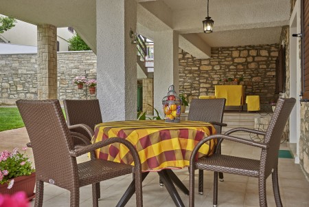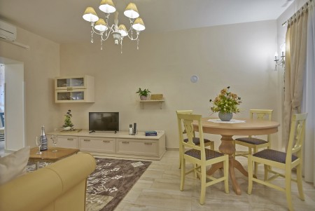Ovaj ugodno i komforno uređen apartman se nalazi u prizemlju obiteljske kuće u Ližnjanu, malom mjestu na jugu Istre. U Ližnjanu ćete pronaći sve što Vam je potrebno za svakodnevnicu – do restorana, trgovine i plaže se može ići pješke. Susjedno mjesto, Medulin, je udaljeno samo 2 km i tu ima dodatnih izbora za razonodu i izlaske te se tu nalazi i pješčana plaža. Osim novo i moderno uređenog apartmana, tu Vas čeka i uređeno dvorište s natkrivenom terasom i prekrasnim cvijećem.