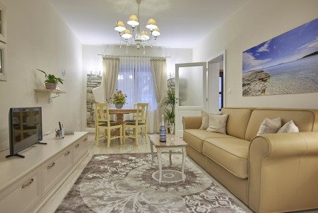 Vrlo lijepo uređeni, moderan apartman s terasom i dvorištem, besplatan WiFi internet, privatni parking, samo 1000 m do plaže