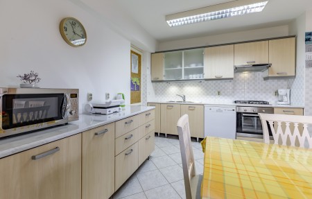 Samo petnaest minuta hoda od centra Medulina nalazi se kuća s dva apartmana u prizemlju i stanom vlasnika na prvom katu. Najbliža prirodna plaža udaljena je samo 15 minuta hoda, dok se pješčana plaža i brojne uređene plaže nalaze u krugu od 800 m do 5 km i lako su dostupne automobilom. Ovaj raznolik obalni dio na samom jugu istarskog poluotoka obiluje brojnim uvalama za kupanje, okruženim prirodnim krajolikom. Poznati obalni grad Pula udaljen je samo 9 km i svakako vrijedi posjetiti. Najpoznatiji spomenik i simbol grada je impresivna Arena, rimski amfiteatar koji se može razgledati, a također služi i kao jedinstvena pozornica na otvorenom za koncerte i filmske projekcije.