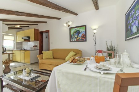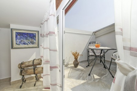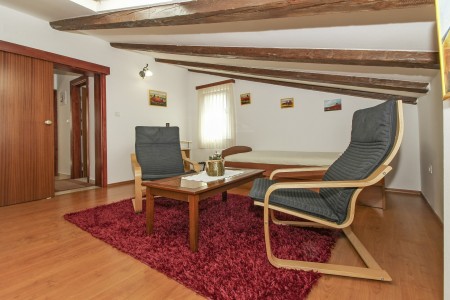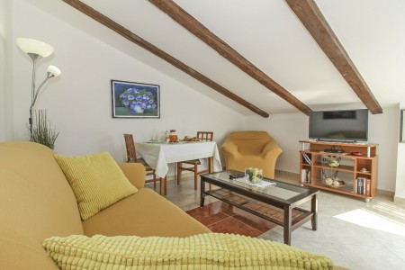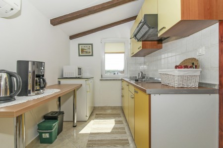 1 apartman za 2 osobe: ca. 48 m², u potkrovlju, klima uređaj, jedna spavaća soba, dnevni boravak s kuhinjom i blagovaonskim stolom, kupaonica (tuš/WC), balkon sa sjedećom garniturom. Smještaj je namijenjen isključivo odraslima.