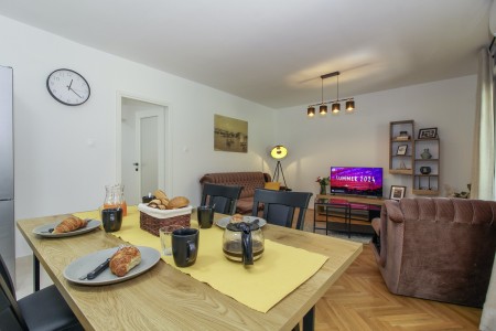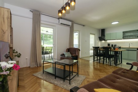 Ovaj potpuno novi apartman s pripadajućom privatnom terasom i ograđenim vrtom nalazi se u mirnom dijelu Poreča na samo nekoliko minuta hoda od najbliže plaže i slikovite stare gradske jezgre. Osim brojnih prekrasnih plaža, Poreč svojim posjetiteljima nudi i široku ponudu gastronomskih sadržaja, restorana i barova, brojne kulturno-povijesne znamenitosti, sportske aktivnosti na otvorenom i bogat noćni život. Okolica je pogodna za zanimljive izlete i ture biciklom. Očekuje vas moderno uređen apartman na atraktivnoj lokaciji u Poreču sa svim sadržajima potrebnim za ugodan boravak.