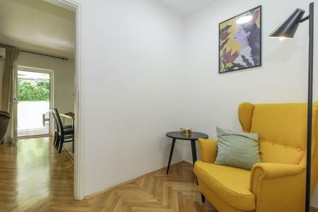 Novo namješten apartman u mirnom dijelu Poreča, s privatnom terasom i vrtom, udaljen samo 1,2 km od plaže