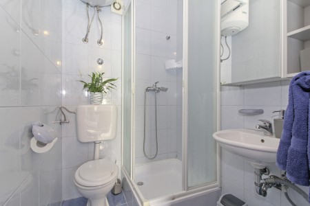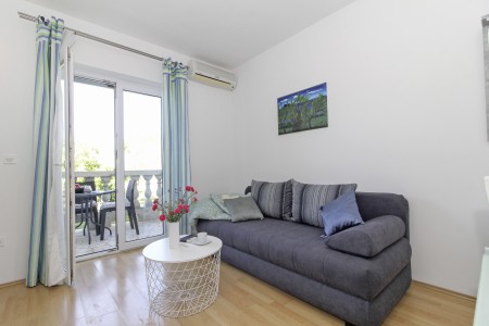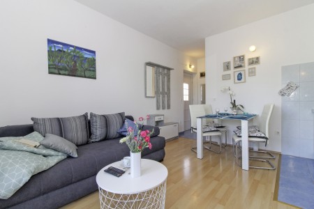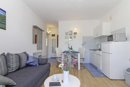 Apartman za 2-3 osobe: ca. 38 m², u prizemlju, s posebnim ulazom. Dnevni boravak/blagovaonica s kuhinjom, klima uređajem, kaučem na razvlačenje (140 x 200 cm) i balkonom, jedna spavaća soba s bračnim krevetom i kupaonica (tuš/WC).