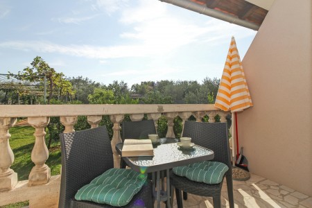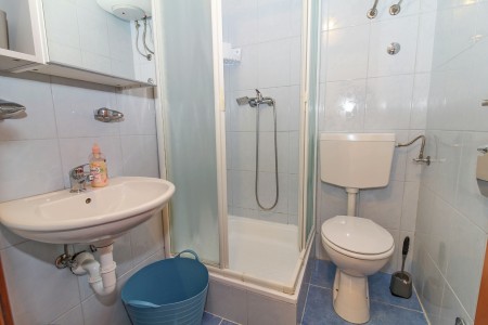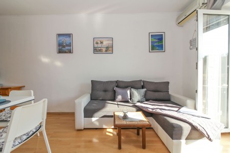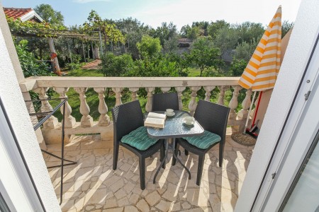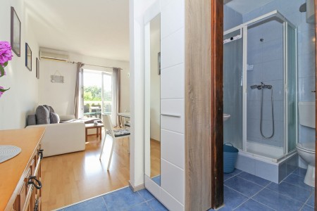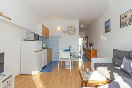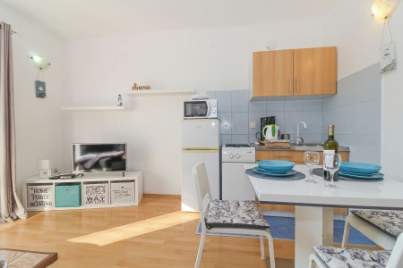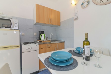 Apartman za 2-3 osobe: ca. 38 m², u prizemlju, s posebnim ulazom. Dnevni boravak/blagovaonica s kuhinjom, klima uređajem, kaučem na razvlačenje (140 x 200 cm) i balkonom, jedna spavaća soba s bračnim krevetom i kupaonica (tuš/WC).