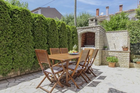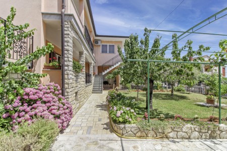 Ova njegovana kuća s dva apartmana smještena je u mirnoj ulici, okružena zelenim mediteranskim krajolikom, na nekoliko minuta hoda od starogradske jezgre Rovinja. Rovinj se smatra najljepšim gradom istarskog poluotoka. Kući pripada vrt s roštiljem koji je gostima na raspolaganju za zajedničko korištenje. U blizini se nalaze teniski tereni, šumski park "Zlatni rt" i brojne uvale s prekrasnim plažama koje su lako dostupne pješice. Povoljna lokacija kuće pruža idealne uvjete za opuštajući odmor na plaži, u kombinaciji sa svim pogodnostima mediteranskog priobalnog grada. Za one koji žele istražiti više od plaža, Rovinj nudi obilje kulturnih, povijesnih i umjetničkih sadržaja. Uz to, u okolici postoje šetnice uz more i staze kroz netaknutu prirodu Istre.