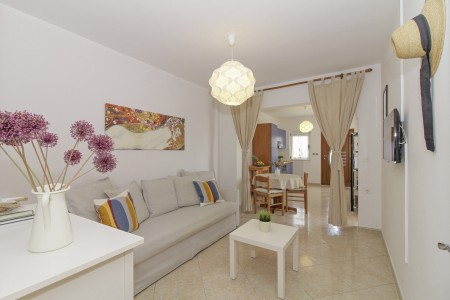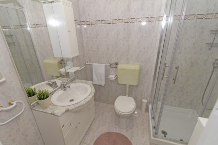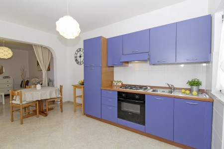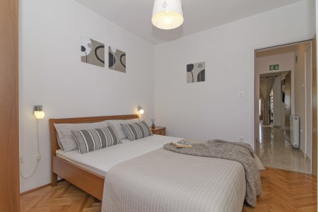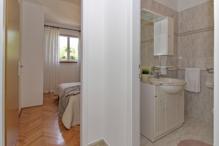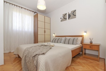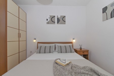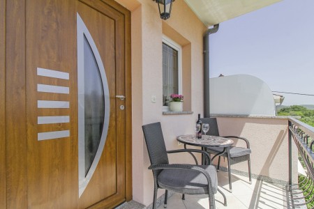Apartman za 2 osobe: ca. 45 m², na prvom katu, s posebnim ulazom. Moderno uređen, sadrži dnevni boravak s potpuno opremljenom kuhinjom, kaučem, blagovaonskim stolom i klima uređajem, balkon s garniturom za sjedenje, spavaću sobu s bračnim krevetom i kupaonicu (tuš/WC).