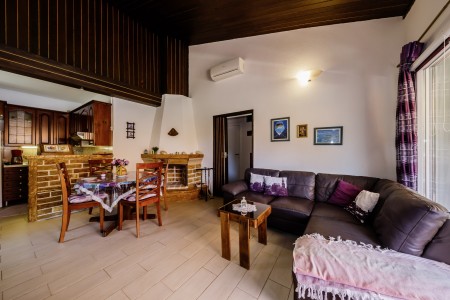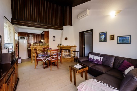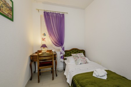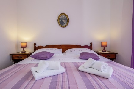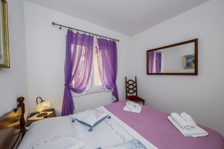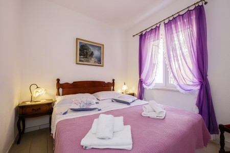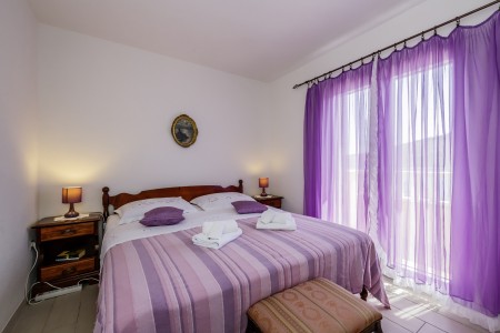 Apartman za 5 osoba: površina od ca. 70 m², na prvom katu. Dvije spavaće sobe s bračnim krevetom, jedna mala spavaća soba s krevetom za jednu osobu, kupaona (tuš/WC), dnevni boravak, stol za blagovanje, kuhinja i klima uređaj. Osim toga, terasa s pogledom na more.