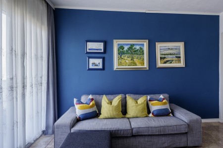 Kuća s ukupno četiri apartmana nalazi se u mjestu Mastrinka na otoku Čiovu, koji je mostom povezan sa starom jezgrom Trogira. Povijesni centar grada, udaljen otprilike 3 km, posjetiteljima nudi brojne znamenitosti, živahnu rivu s kafićima, romantičnim restoranima i jedinstvenu atmosferu mediteranskog obalnog grada. Najbliža plaža udaljena je samo 100 metara od kuće, a restoran i trgovina lako su dostupni pješice.