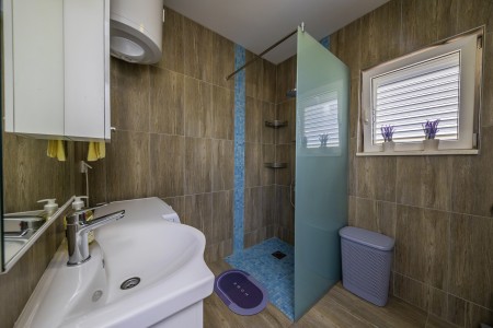 Ostalo: Besplatan WiFi internet. Natkrivena zajednička terasa u prizemlju s kaminom za roštilj, stolom i stolicama. Besplatni privatni parking uz kuću.